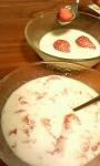 お風呂上がりのイチゴミルクタイム(*^^*)