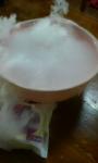 ブクブクと泡立ち神々しく白い煙発生〜〜っ! これこれっ!これよ(*^^*)! アイス最中を買った時、お持ち帰り時間をちょっと長めに申告したのだぁ(^_^;) アイス最中(あずき)をかじりながら、ドライアイス鑑賞会。 「いい煙の流れだね。」 「この音はどこか懐かしいわ…素敵。」 「あ、今僕には泡が弾けた瞬間天使が見えたよ。」 ウヘへ。 |