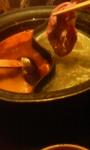 久しぶりのしゃぶしゃぶじゃ〜(^○^) 肉は向こう側が透けて見えるけど、うめっす! 鍋の中で八の字を三回回し、おろしポン酢につけてお口へ〜(*^^*) きゃ〜! 八の字!ポン!パクっ! 八の字!ポン!パクっ! きゃ〜っはっはっはっは〜っ! テンション上がりまぁす! |