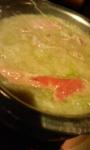 お次は〜。 お鍋をきれいに洗ってから、 もやしを敷いて、豚バラを並べ、塩こしょう。 決め手はおろし生姜だよん! チーン! 湯気の上がるお肉にポン酢をかけるのだぁ(*^^*) おうっ! 見た目は地味だけど、 うめ〜〜っすお母さまっ! これはヒットっすお母さまっ!! おもろな夕食になりましたお母さま。 |