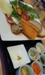 お皿の中で、バーグのタレとサラダのドレッシングとご飯が微妙に混ざった部分の、その味が、たまりません!