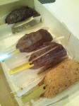 てなわけで、おはぎちゃわんです(*^^*) あんこババァとしては、堂々とおはぎをお土産にできる季節です♪ いつでも買えばいいじゃんと思うでしょ? なんかさぁ、差し入れにおはぎだと印象がおばあちゃんぽくない?ぽいよね(^_^;) あ、私はあんこババァだからいいのか…。 へんな気に仕方。 ま、とにかく♪ 差し入れにピッタリな串刺しおはぎなの! 竹製のフォークになっとりますm(__)m 食べやす〜い!! つぶ、こし、きな、ゴマの順に好きです(*^^*) |