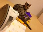 アイロン仕立てで綺麗にたたんだポカポカする洗濯物の上…。 ちょっとどいて!ってお尻を押したらしっぽをブンブンして怒ってるトコロ~_~; ん〜、まいっか。 |