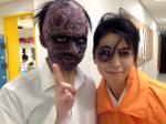ちょっとギョッとしますよね💦 うむ、オフショットとは言え写真で見るとビックリ親子かも…。゚(゚´Д`゚)゚。 不幸な星の下に生まれてきた息子、青沼静馬役の正野大輔くんと大谷秀一郎くん(Wキャスト)です。戦争で顔にヒドい火傷を負ってしまったという設定でしたので、火傷マスクを被りさらにスケキヨマスクを被っての熱演でした。母からすると火傷の痕すら愛おしい…。 お二人とも素顔は可愛いのよ(о´∀`о) 物語上では静馬は殺されてしまい母子の再会は叶わないのですが、階段や薄暗い舞台袖で静馬は目の不自由な母の手を優しく引いてくれていたのです(;ω;) しんどい役でしたが唯一救われた幸せな時間です。 やば… 思い出すとまた泣きそう💦 |